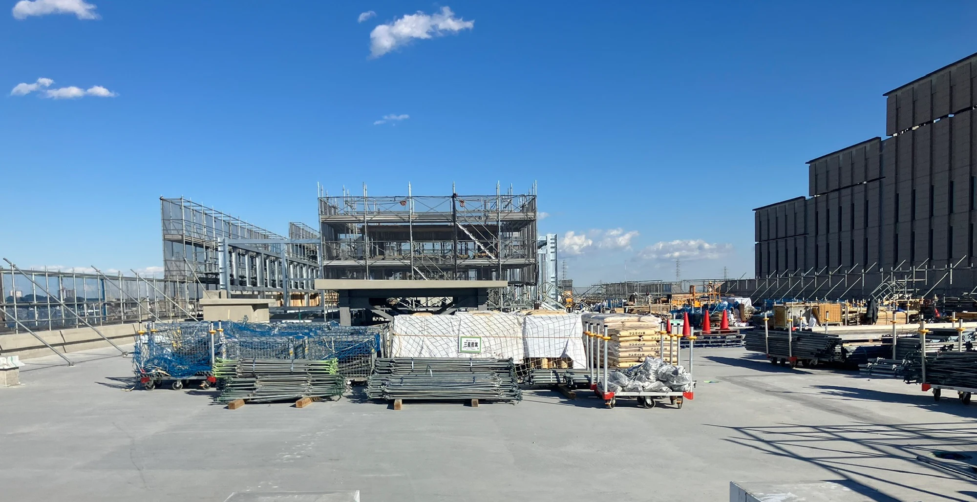 屋根30分耐火認定を取得したルーフデッキを下地とし、高品質な防水層と断熱材を組み合わせて軽量屋根をつくります。デッキコンクリートの合成スラブと比べ工期を短縮することができます。